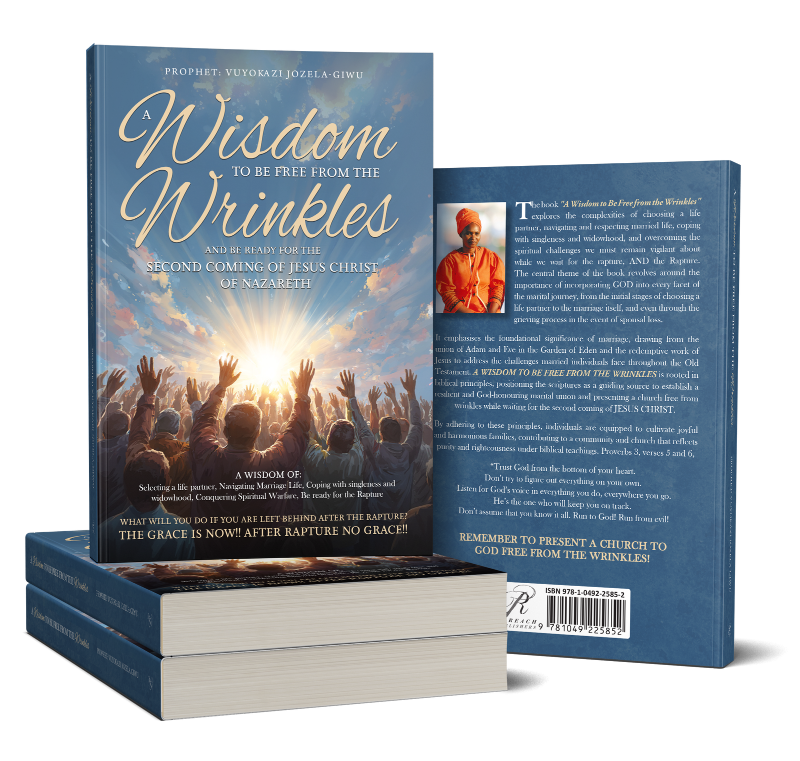 In 2024, Vuyokazi felt a strong calling from the Holy Spirit to write a book titled *A Wisdom to Be Free from the Wrinkles and Be Ready for the Second Coming of Jesus Christ of Nazareth*. She wrote this significant book during her Wilderness Season, a challenging time in her calling as a Prophet